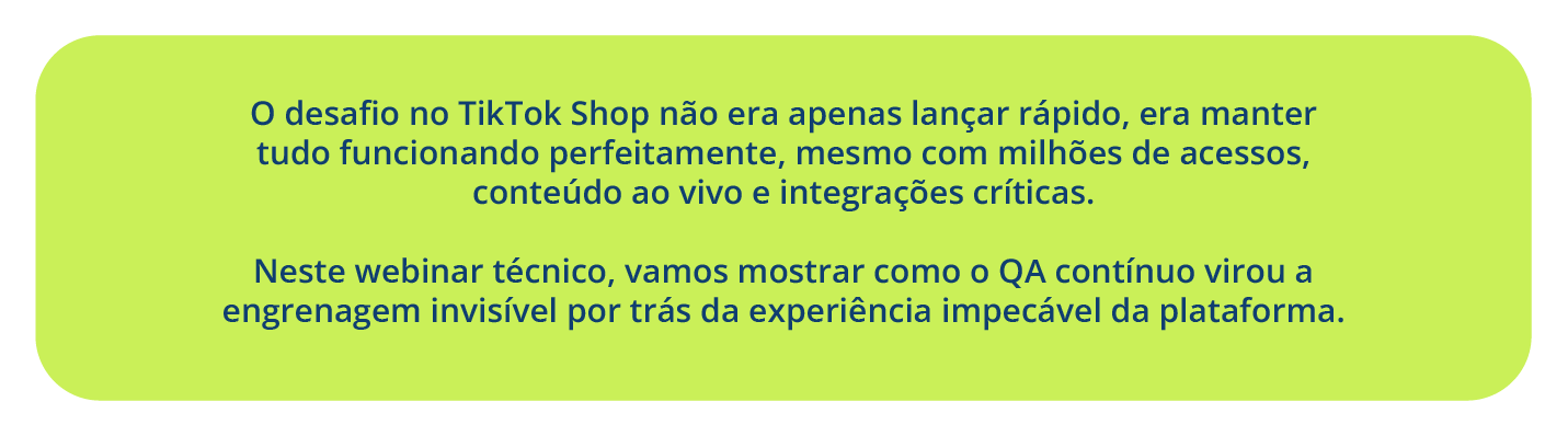 Assista ao webinar e descubra como o QA contínuo sustentou o sucesso do TikTok Shop